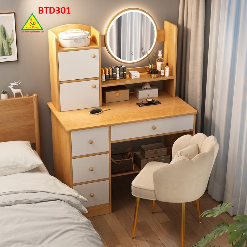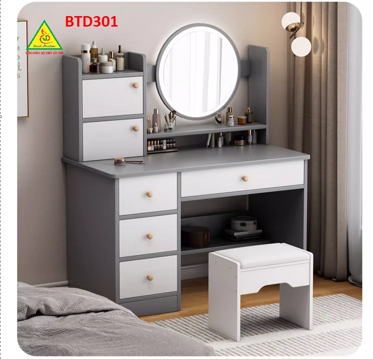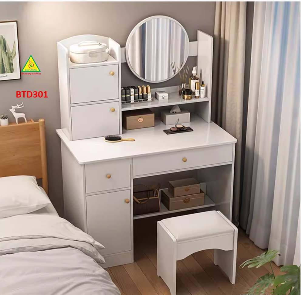 Bàn trang điểm là một món đồ nội thất quan trọng trong phòng ngủ hoặc phòng trang điểm, được sử dụng để tạo ra một không gian thuận tiện và thú vị để trang điểm và làm đẹp.