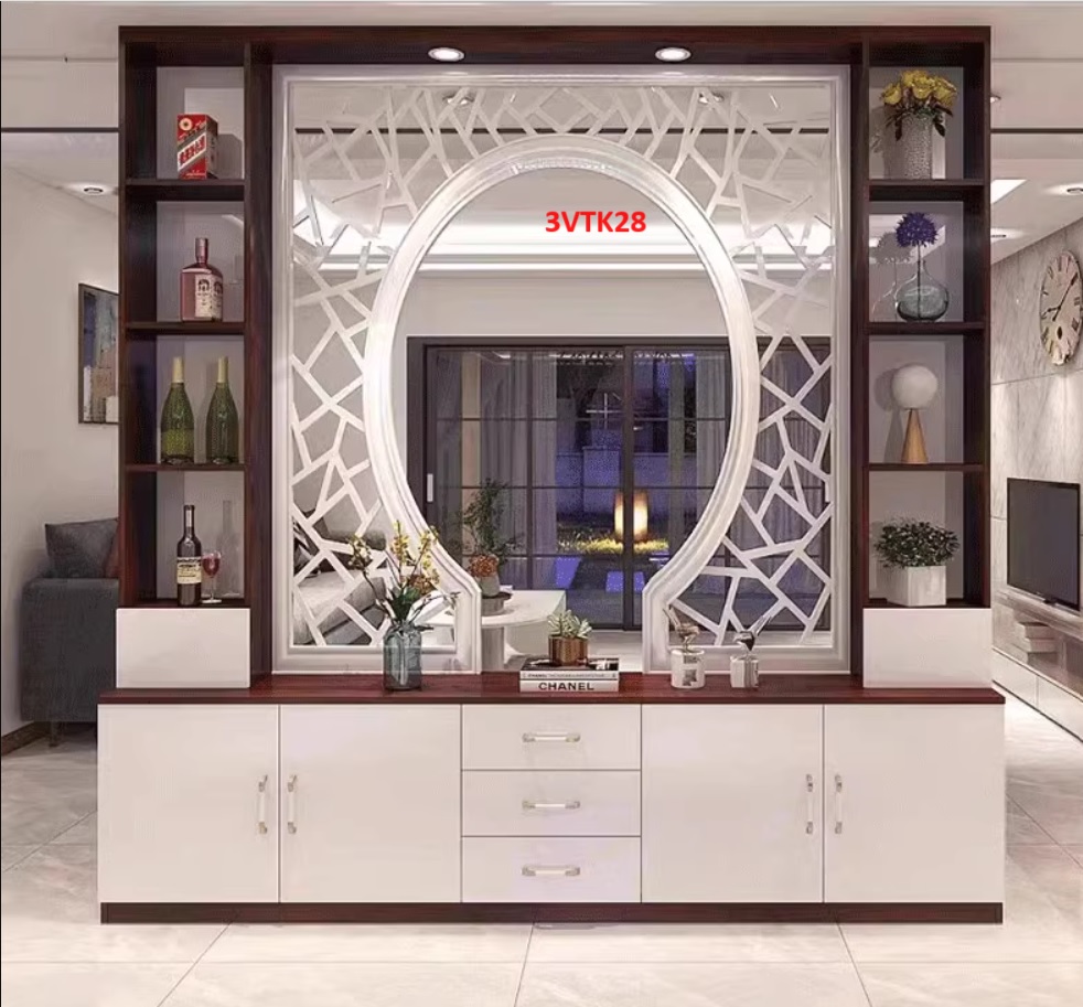 Đây là loại kệ tivi kiêm vách ngăn phòng khách và nhà bếp được dùng vừa với chức năng để tivi trang trí phòng khách, vừa được dùng với chức năng là vách ngăn cách giữa phòng khách và nhà bếp.