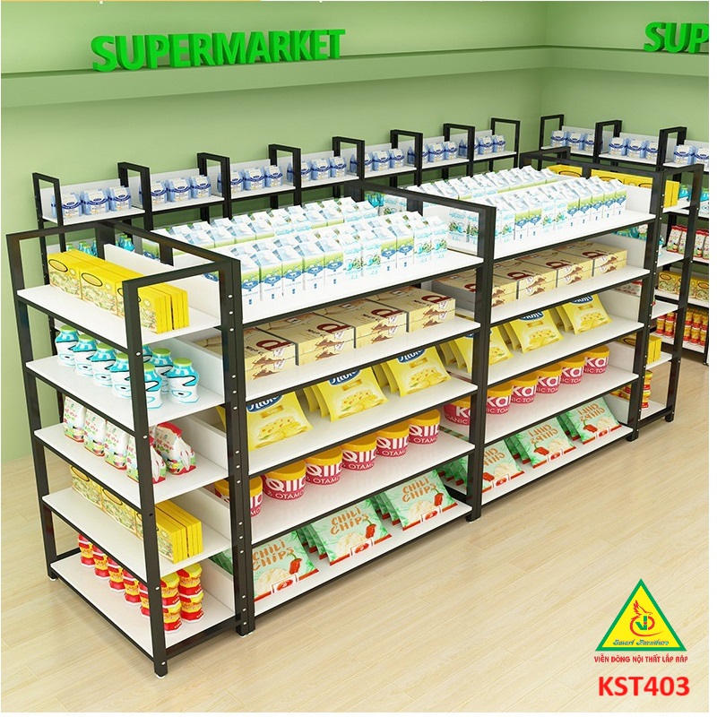 Kệ đôi hay kệ bán hàng siêu thị có hai mặt trưng bày sản phẩm. Có thể lắp đặt kệ độc lập giữa không gian hoặc nối tiếp thành một dãy kệ dài để trưng bày sản phẩm. Với thiết kế như vậy, kệ thường được đặt tại giữa mặt bằng, vừa trưng bày sản phẩm, vừa phân chia quầy hàng, tạo thành lối đi cho khách hàng.