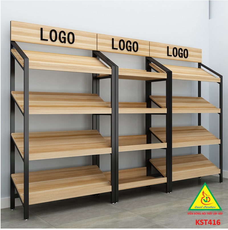 Kệ trưng bày sản phẩm, hàng hóa , kệ trang trí khung sắt mặt gỗ có nhiều kiểu dáng cho khách hàng lựa chọn theo nhu cầu riêng của từng cửa hàng như: