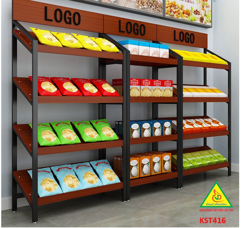 Kệ khung sắt mặt gỗ là một một loại kệ trưng bày hoặc để hàng hóa sản phẩm. Tuy nhiên, thay vì sử dụng mâm tole , thì các mẫu kệ này sẽ được sử dụng chất liệu gỗ MDF để làm mâm chứa hàng, kết hợp với khung sắt chắc chắn, thì mẫu kệ này là loại kệ để được rất nhiều loại đồ, và ứng dụng được trong rất nhiều nhu cầu của khách hàng như chứa đồ, trang trí, bán hàng…