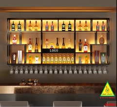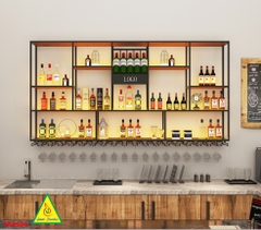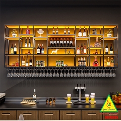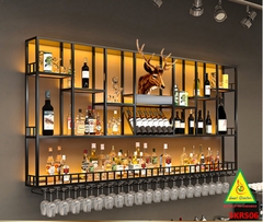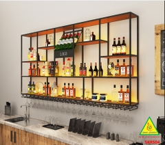 KỆ TRƯNG RƯỢU KHUNG SẮT – MẶT GỖ CÓ ĐÈN 5KRS01 - NỘI THẤT LẮP RÁP VIENDONGADV