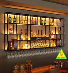 KỆ TRƯNG RƯỢU KHUNG SẮT – MẶT GỖ CÓ ĐÈN 5KRS05 - NỘI THẤT LẮP RÁP VIENDONGADV