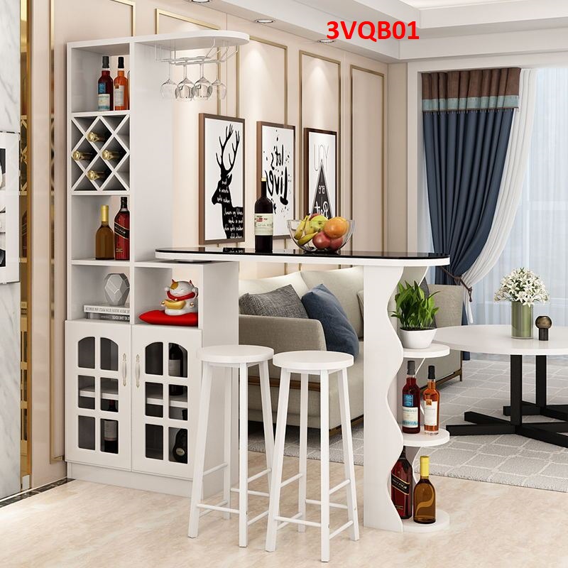 Quầy bar mini, quầy bar kiêm vách ngăn phòng khách nhà bếp 3VQB01