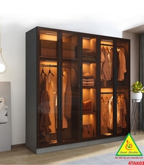 Tủ quần áo gỗ MDF cánh kính cường lực khung nhôm 4TAK03 - Nội thất lắp ráp Viendong Adv
