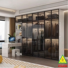 Tủ quần áo gỗ MDF cánh kính cường lực khung nhôm 4TAK04 - Nội thất lắp ráp Viendong Adv