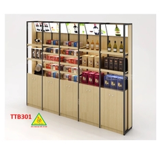 Tủ trưng bày sản phẩm cho cửa hàng , siêu thị mini, shop bán hàng thời trang … với thiết kế đơn giản tiện dụng. Tủ được đặt dựa sát tường tiết kiệm không gian.