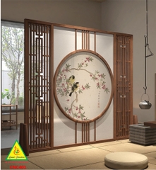 Bình phong gỗ khung tranh cắt CNC cho phòng khách, nhà bếp, nhà hàng, spa CNC404 - Nội thất lắp ráp Viendong Adv
